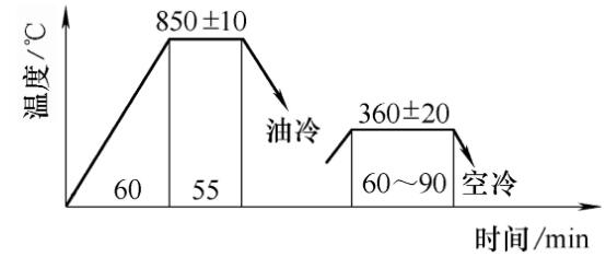 (6)回火  回火設備采用RJJ-35井式爐,裝爐量為3000件/每爐;回火溫度為(360±10)℃;保溫時間為1~1.5h。